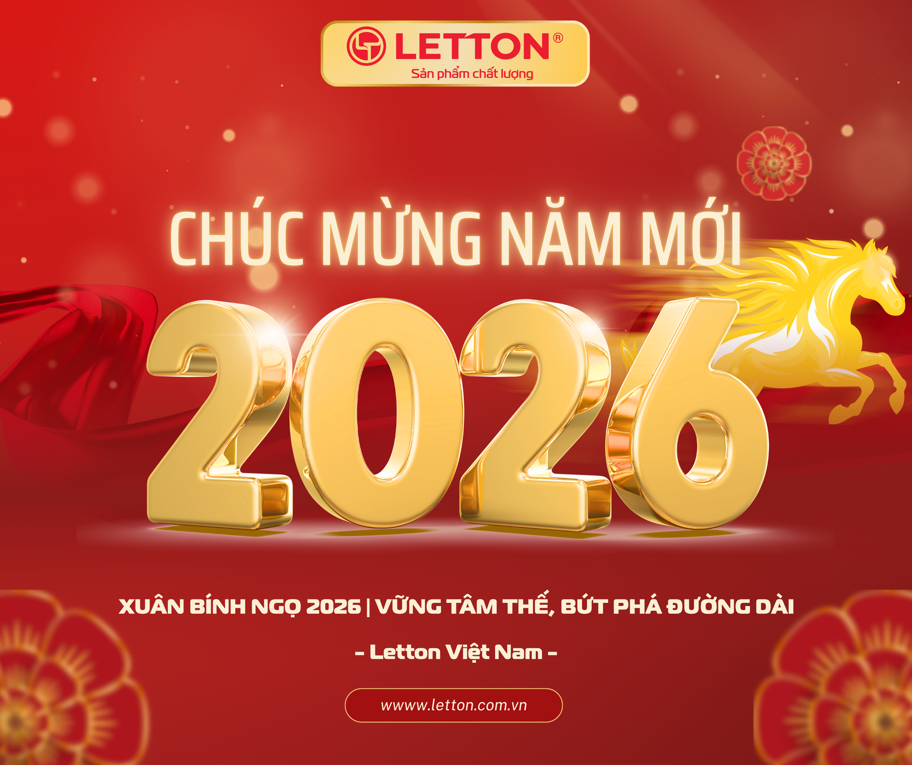Nhân dịp năm mới Xuân Bính Ngọ 2026, Letton Việt Nam trân trọng gửi đến Quý Khách hàng, Quý Đối tác và toàn thể Anh/Chị/Em lời chúc tốt đẹp nhất: