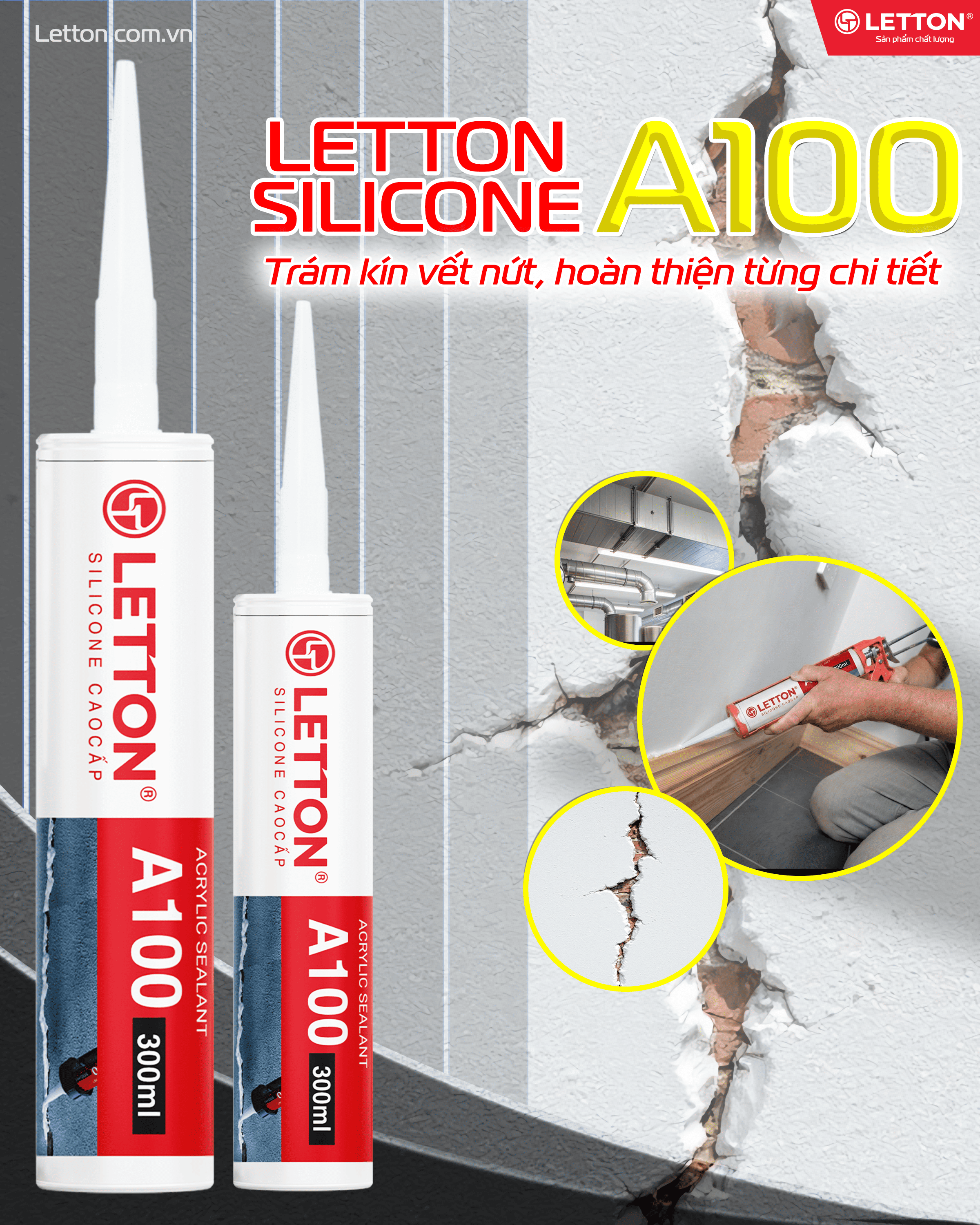 Keo Silicone Letton A100 được thiết kế nhằm xử lý gọn gàng các khe hở nhỏ và vết nứt bề mặt, giúp công trình đạt được sự hoàn thiện tinh tế và đồng bộ.