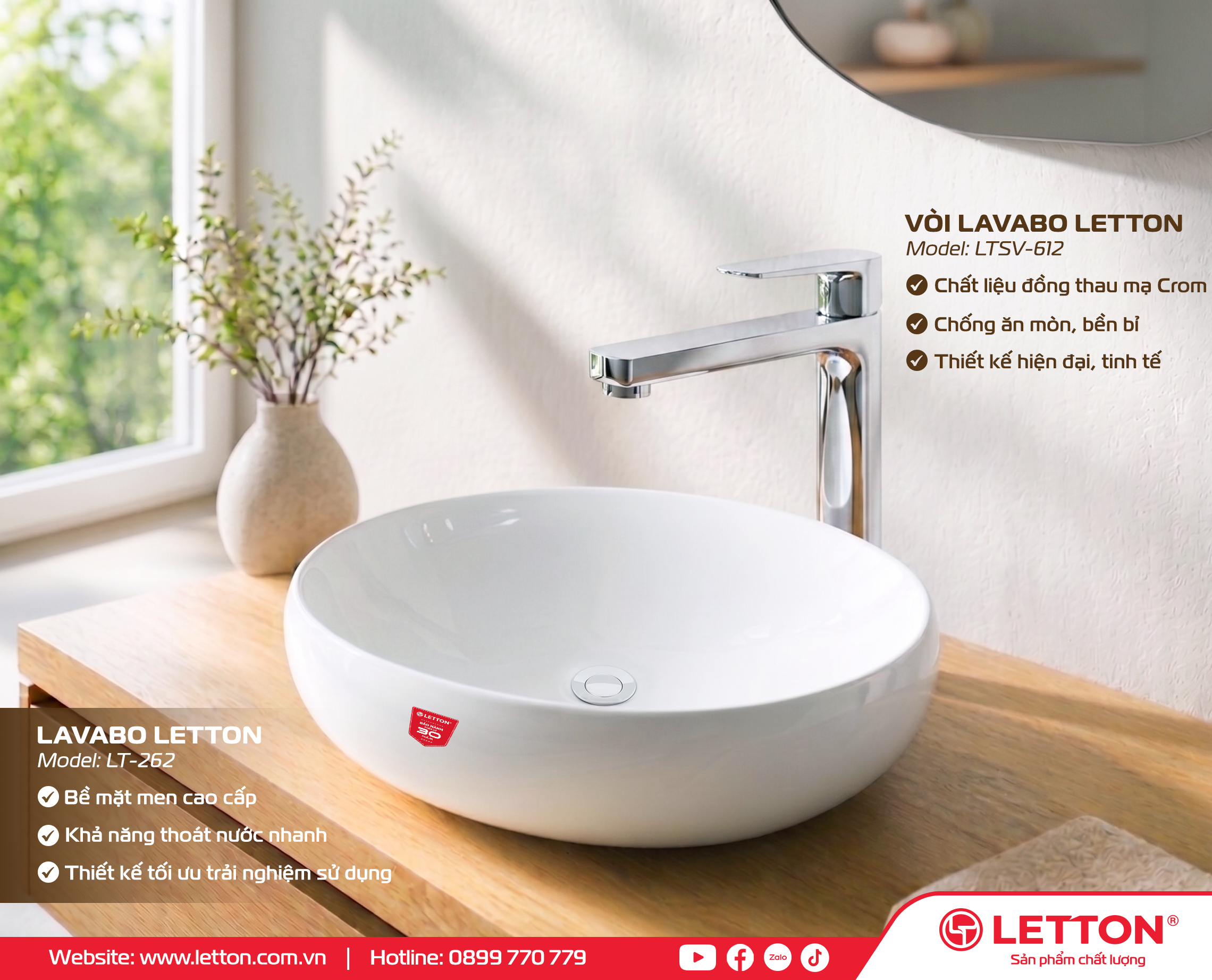 Lựa chọn Lavabo Letton LT - 262 là lựa chọn một không gian gọn gàng, thẩm mỹ và tiện nghi hơn mỗi ngày. Sản phẩm được hoàn thiện chỉn chu, đáp ứng tốt nhu cầu sử dụng thực tế và độ bền lâu dài. Letton đồng hành cùng bạn với dịch vụ giao hàng nhanh chóng, chăm sóc tận tâm, giúp bạn an tâm trong suốt quá trình sử dụng.