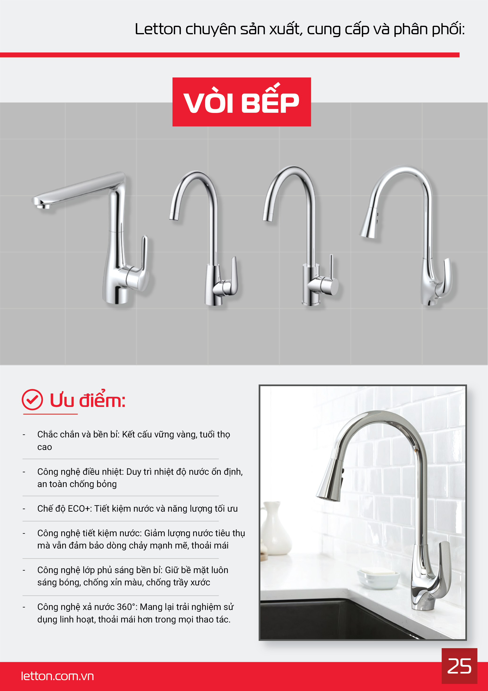 Ngành thiết bị vệ sinh – nhà bếp là một trong những mảng kinh doanh chiến lược được Công ty Letton Việt Nam đầu tư phát triển bền vững. Với định hướng “Hiện đại hóa không gian sống Việt”, Letton không chỉ mang đến các sản phẩm chất lượng cao mà còn cung cấp giải pháp tổng thể cho không gian bếp và phòng tắm, đáp ứng tiêu chuẩn của các ngôi nhà thông minh hiện đại.(The kitchen and sanitary ware division is one of Letton Vietnam’s strategic business sectors, focusing on delivering comprehensive and intelligent living solutions for modern households. With the mission of modernizing Vietnamese living spaces, Letton integrates advanced technology, premium design, and long-lasting quality in every product)
