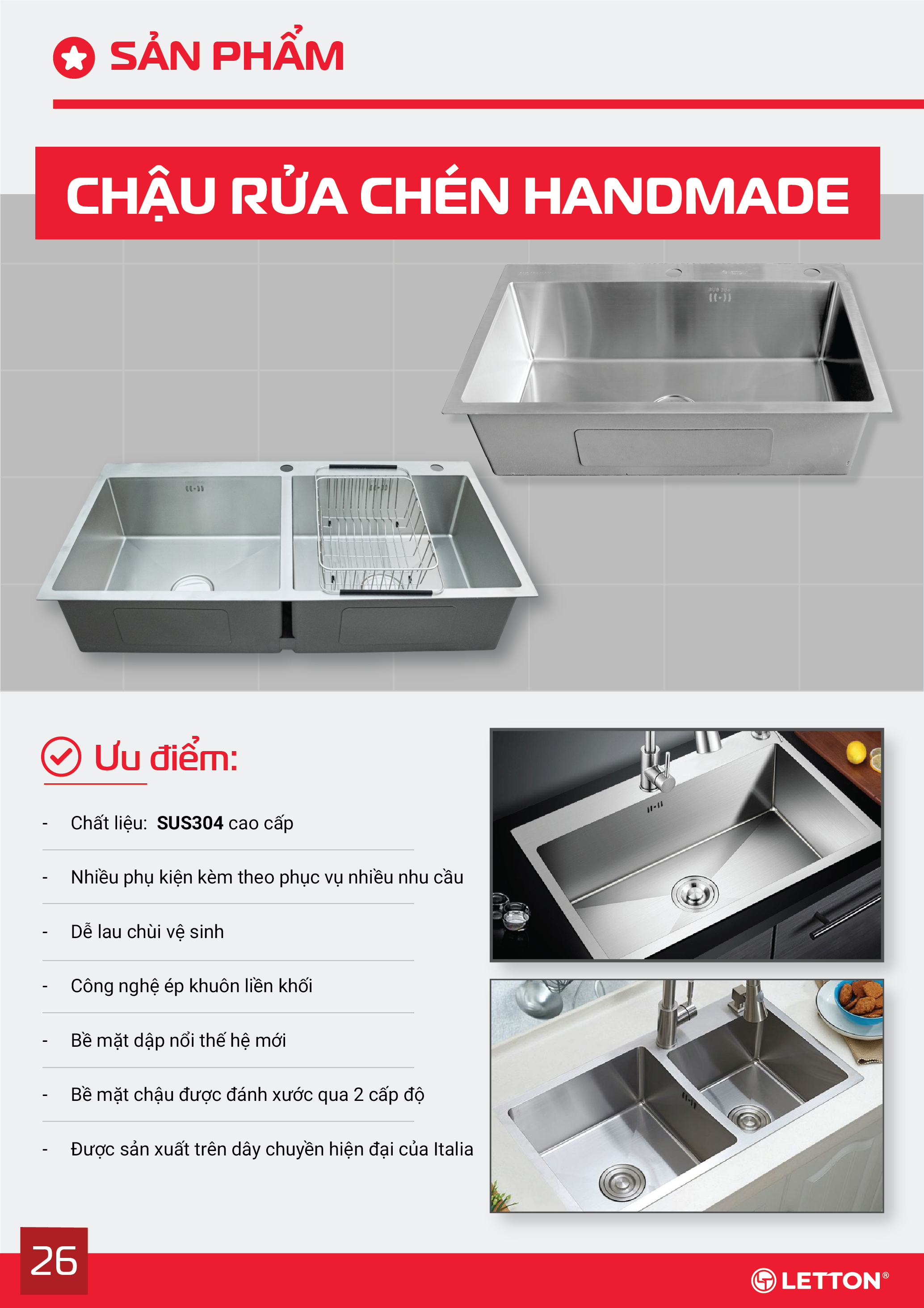 Letton ứng dụng công nghệ để tạo nên các sản phẩm có độ bền cao, tính thẩm mỹ vượt trội và an toàn cho người dùng. Các sản phẩm như chậu rửa, vòi nước, máy lọc nước đều đạt tiêu chuẩn chất lượng quốc tế, phù hợp với không gian sống hiện đại.(Letton products are manufactured using precision moulding, seamless welding, and anti-stain surface technology, ensuring durability and refined aesthetics. From stainless steel sinks, faucets, and kitchen racks to built-in appliances and water filtration systems, every Letton product reflects advanced engineering and lasting performance)