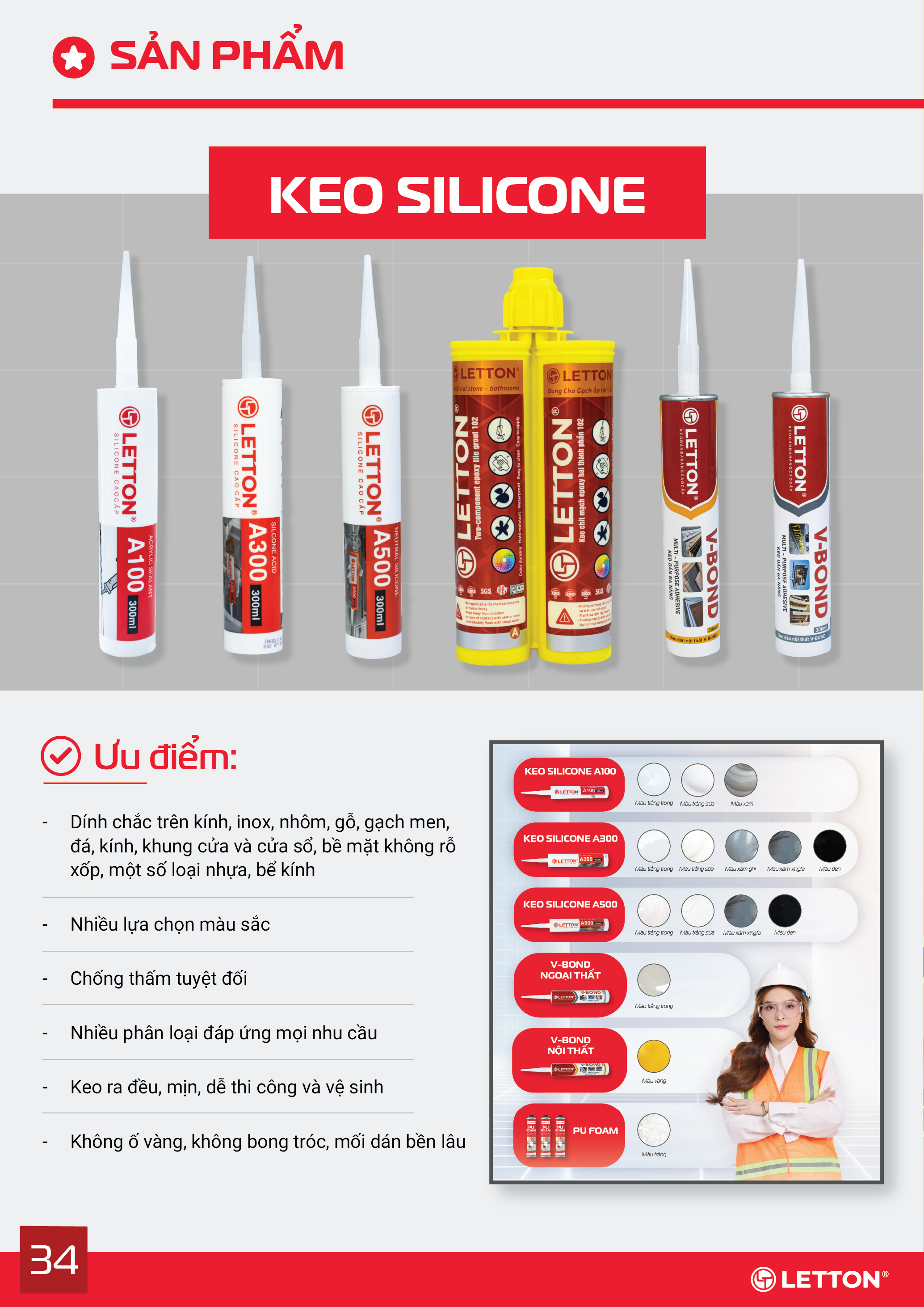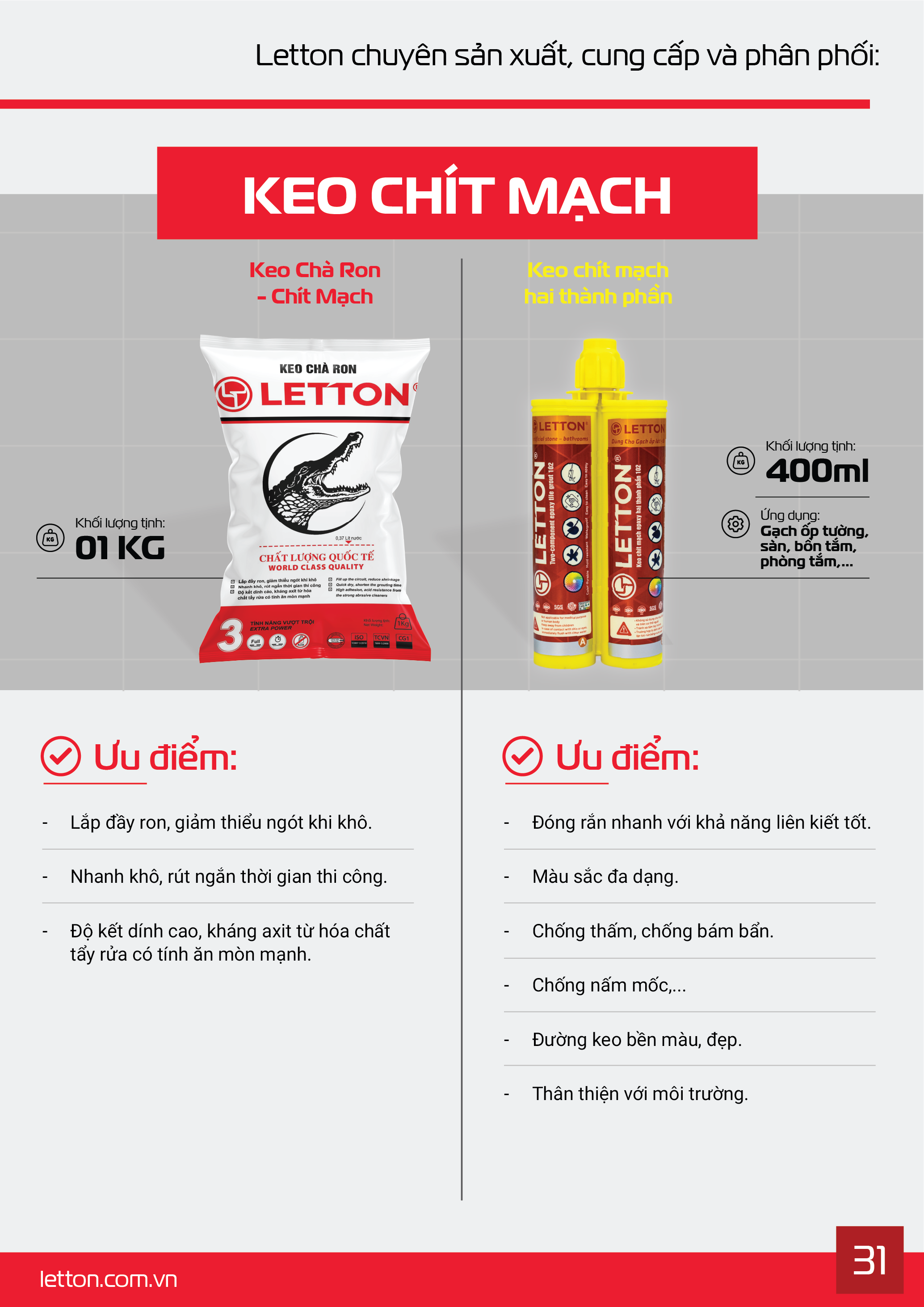 Mỗi sản phẩm đều được kiểm tra về độ bám dính, khả năng chống thấm, độ chịu lực và độ bền nhiệt, đảm bảo chất lượng tối ưu trong mọi công trình xây dựng – từ dân dụng đến công nghiệp.(Letton adheres to strict quality control safety and environmental standards. Each product is tested for adhesion, waterproofing, strength, and heat resistance, ensuring outstanding performance for both residential and industrial construction projects)